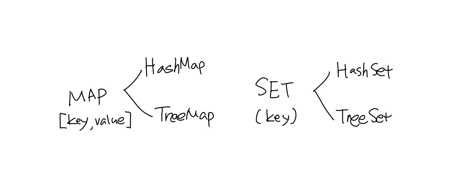 - Map과 Set은 key가 중복되는 데이터는 저장 불가