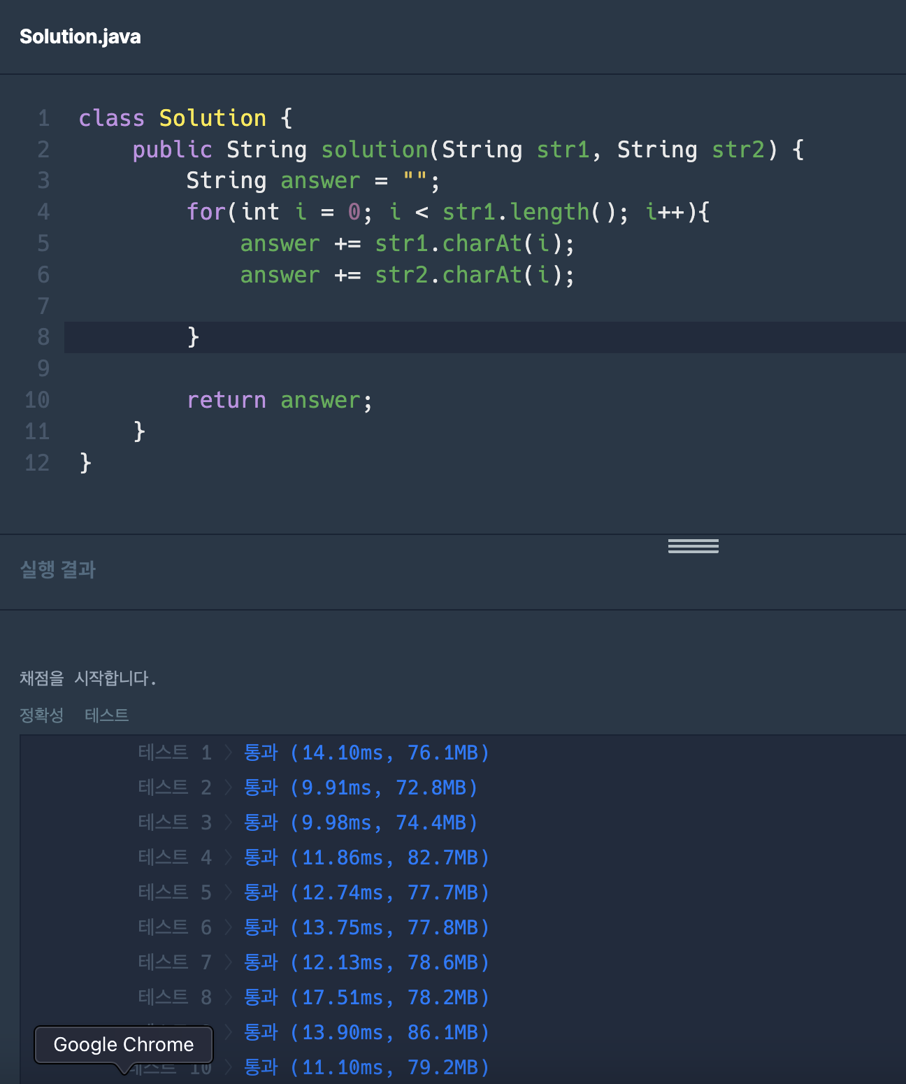 public String solution(String str1, String str2) {