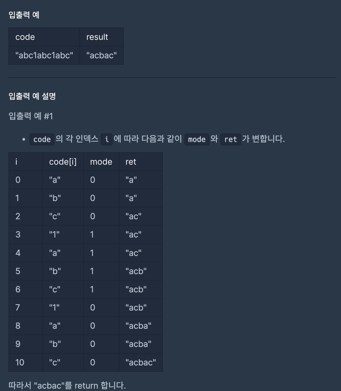 mode가 0일땐 짝수 인덱스의 문자를 ret에 추가