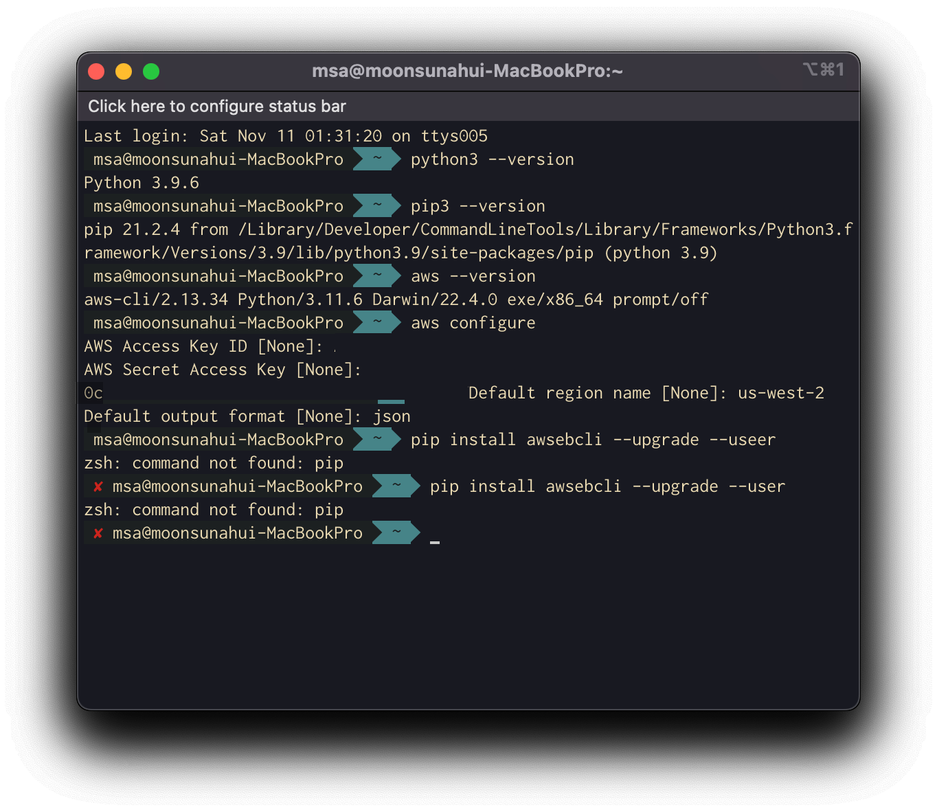 이제 pip3을 이용하여 EB CLI을 설치한다
