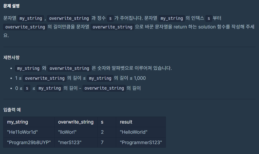 // my_string와 overwrite_string은 숫자와 알파벳으로 이루어져 있습니다.